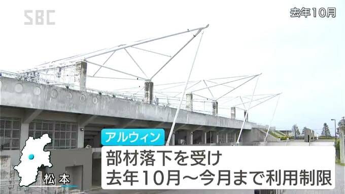 松本市のサンプロアルウィンで鉄骨部材が落下し、利用を停止していた問題で、県は、サッカーJ3松本山雅の試合会場の変更などに伴う経済的な損失の一部を負担する方針を明らかにしました。