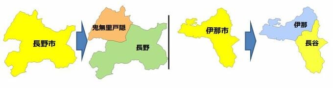 今回、県や長野市、伊那市と検討を重ねた結果、新たに長野市を長野と鬼無里戸隠に、伊那市を伊那と長谷に分けて発表することにしたとしています。