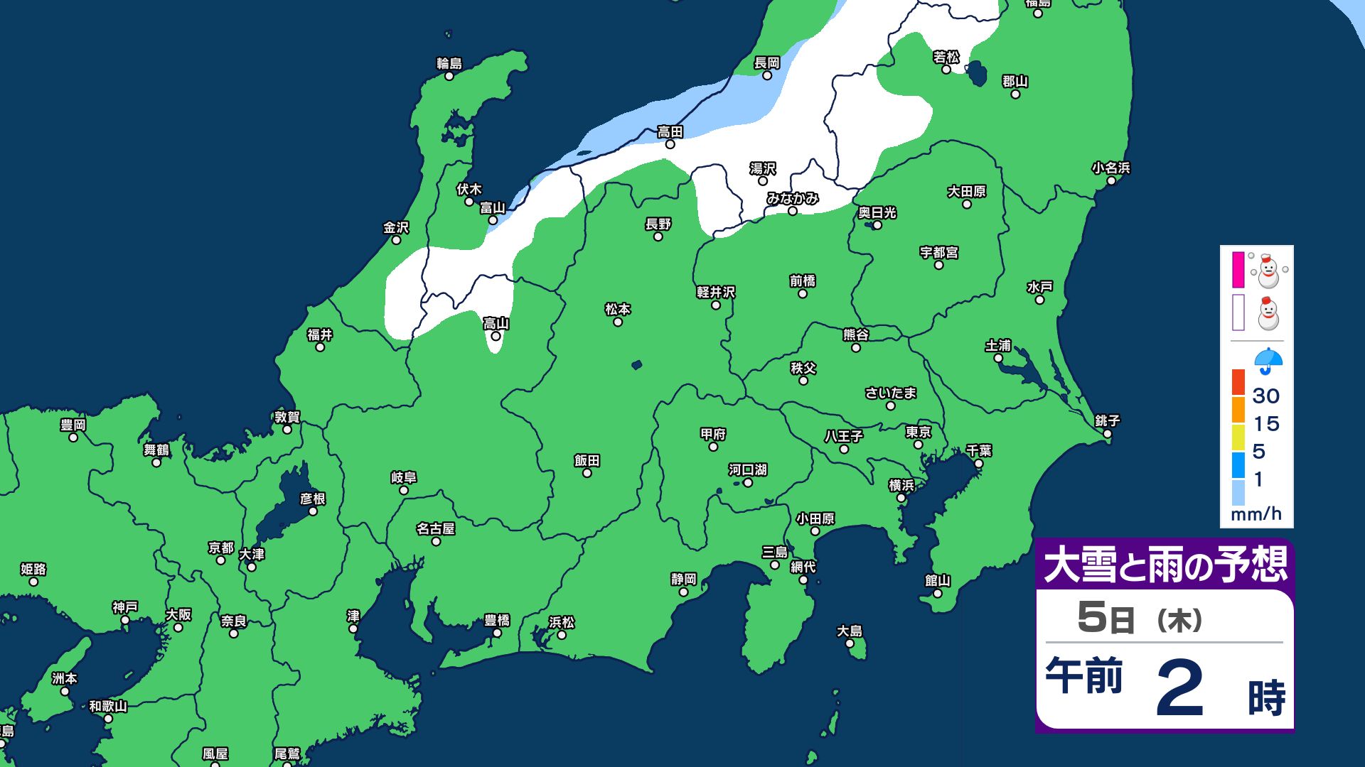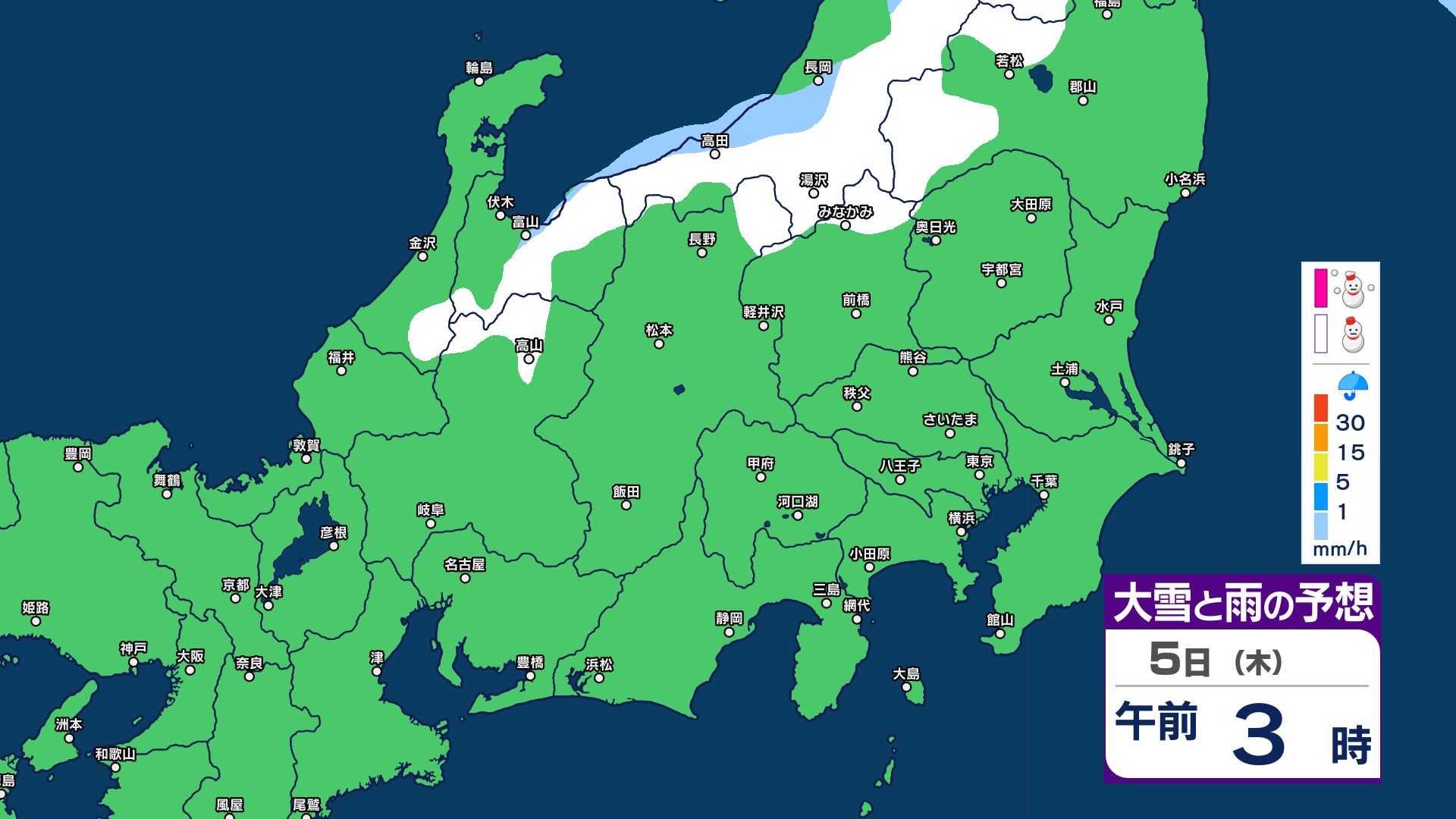 【あす3日(火)の天気】全国的に雨・山沿い中心に雪、“真冬の寒さに逆戻り” 関東は朝までに本降りの雨に 関東山沿いで雪も【雨と雪のシミュレーション】