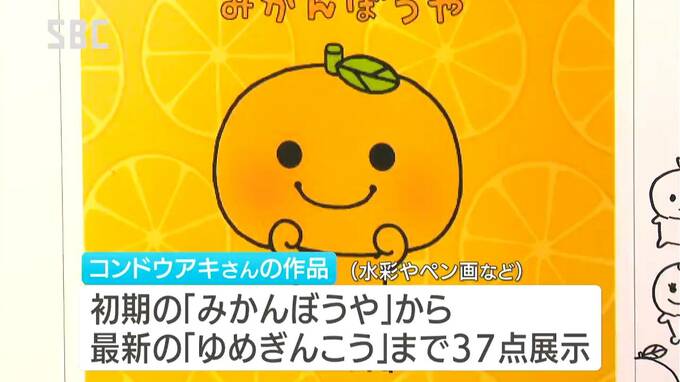 展覧会は、コンドウアキさんの作家生活20年を記念するもので、初期の「みかんぼうや」から最新シリーズの「ゆめぎんこう」まで、水彩やペン画の作品37点が展示されています。