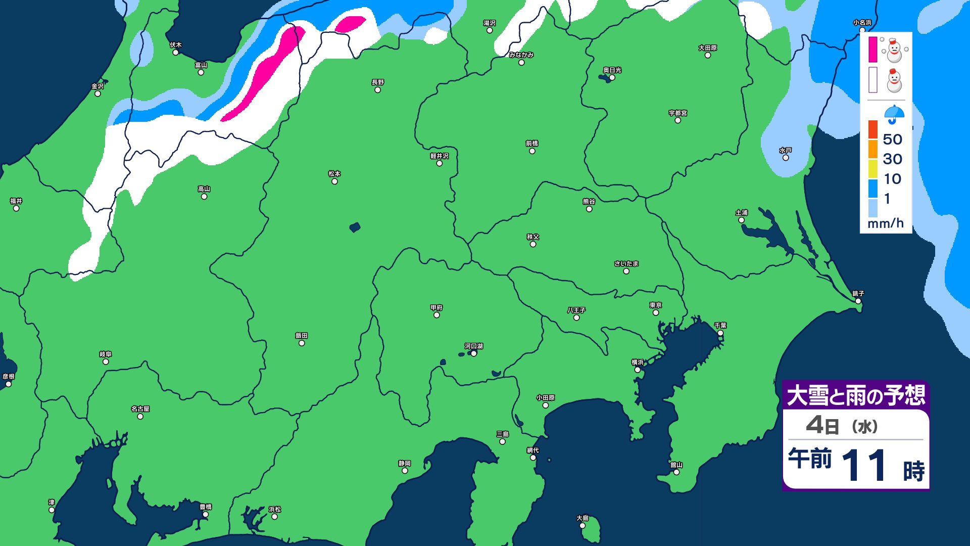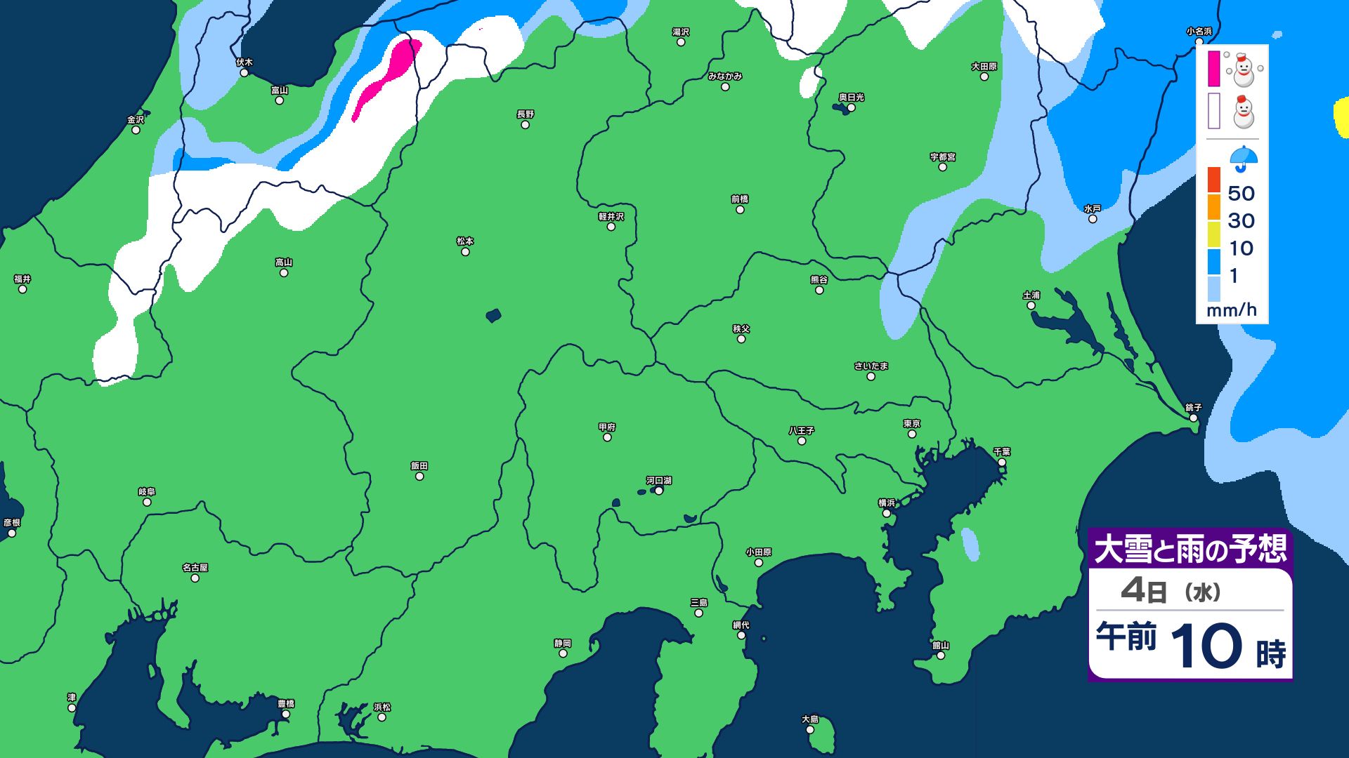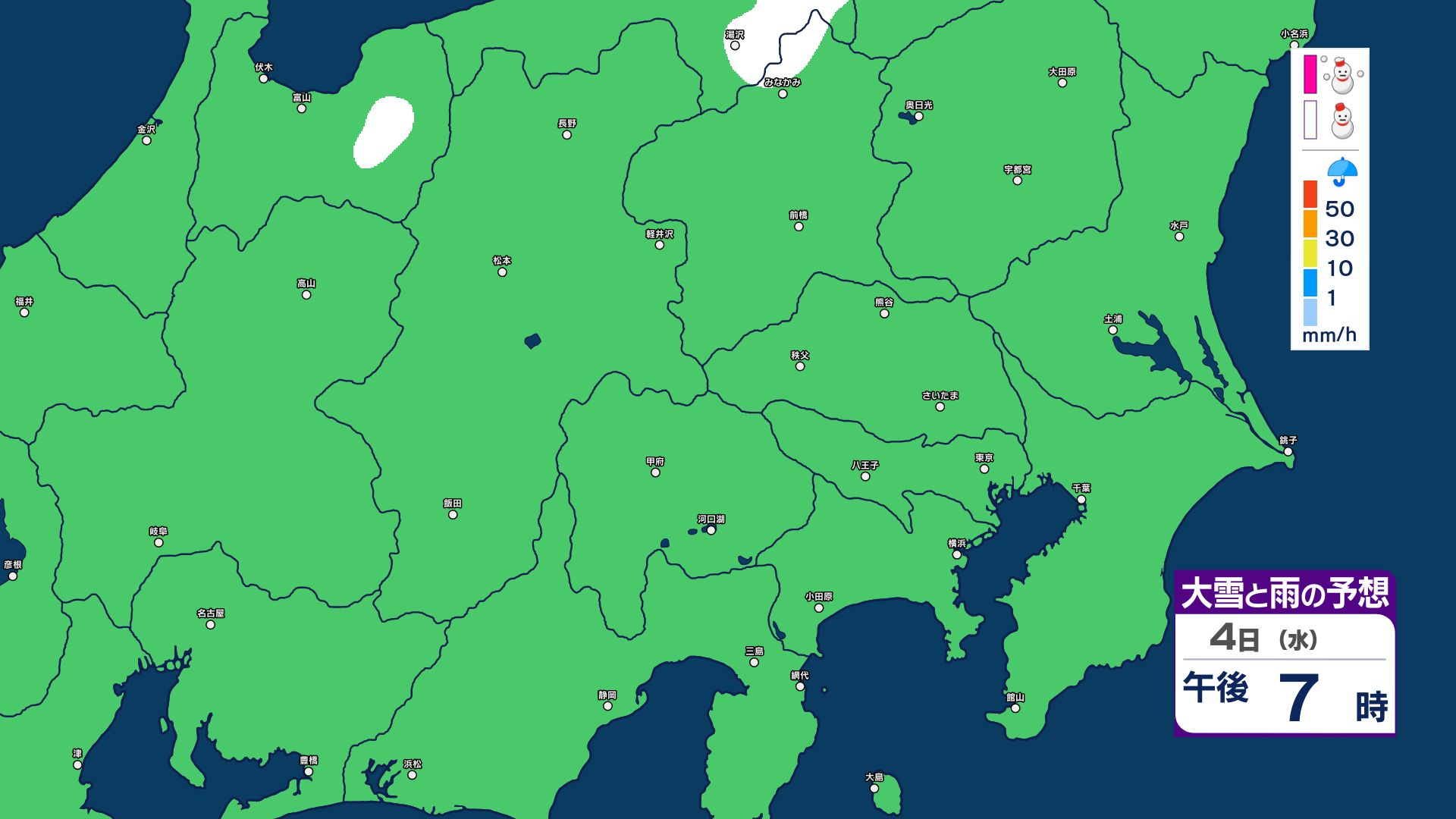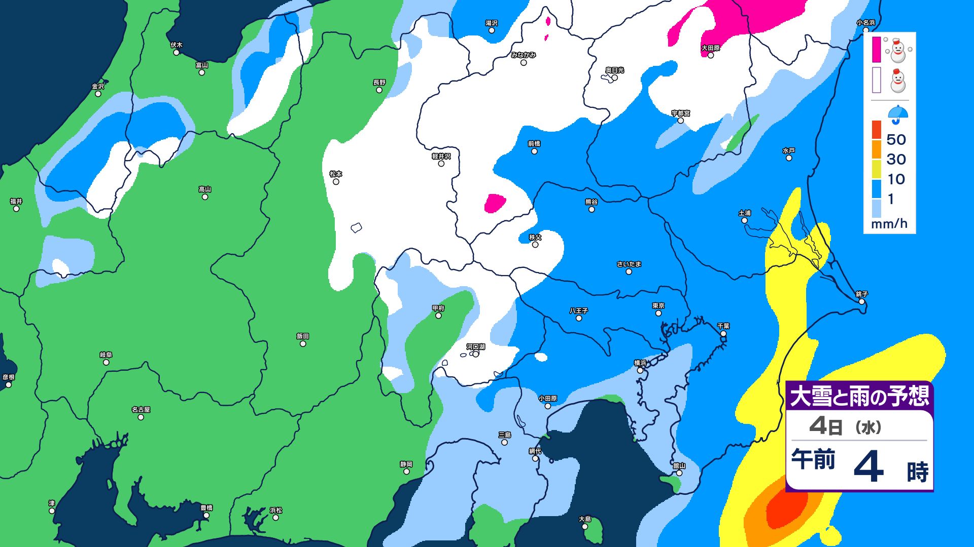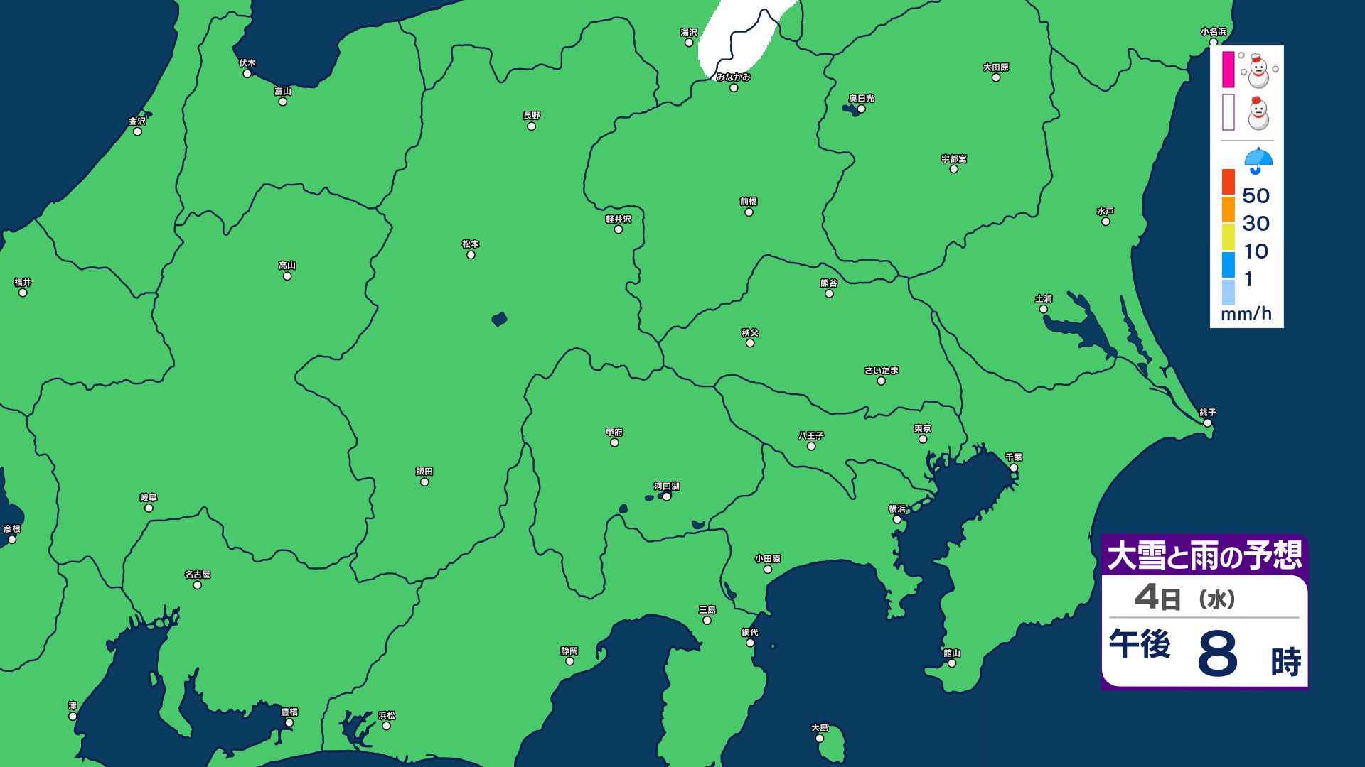 【大雪情報】長野県中部 4日明け方にかけ 大雪や路面の凍結による交通障害に十分注意【雪と雨のシミュレーション画像掲載】20センチ…大北山沿い・上田菅平・佐久・乗鞍上高地・諏訪(~4日午後6時・多い所)長野地方気象台 2026年3月3日(火) 16:31 国内 大雪と雨の予想(3日~5日)