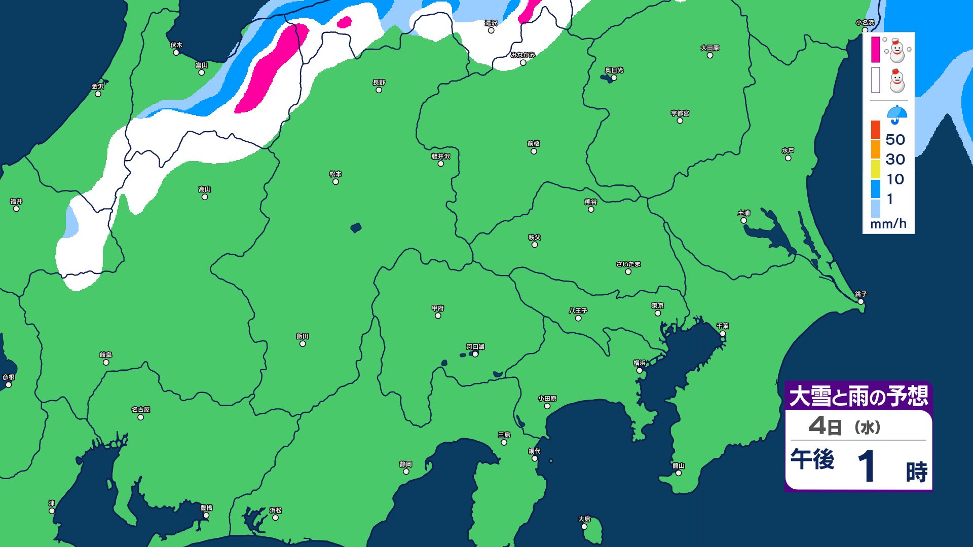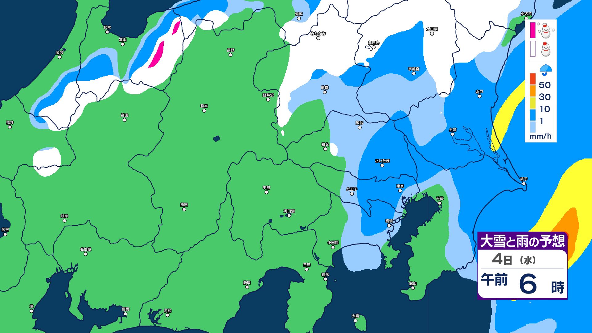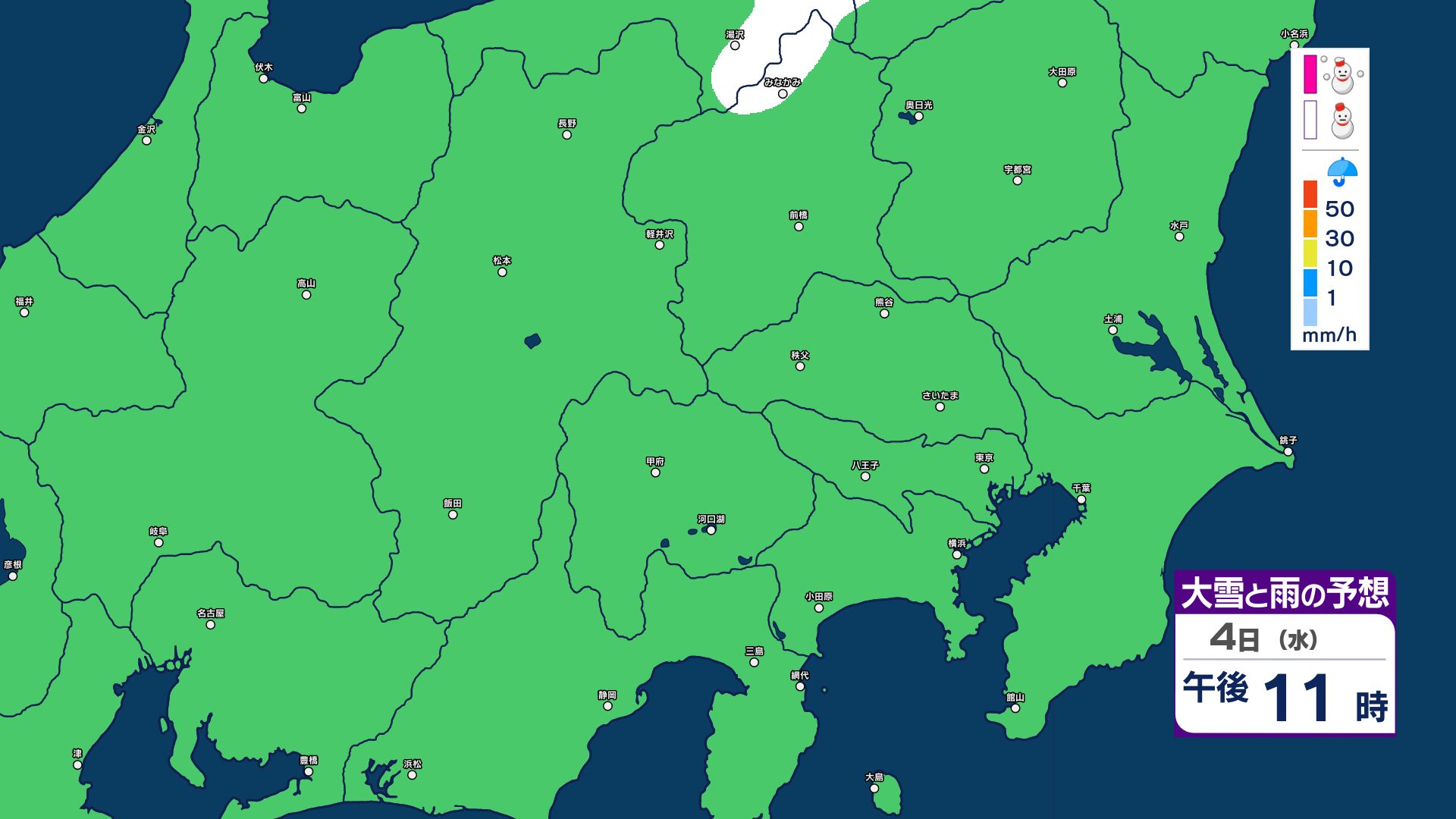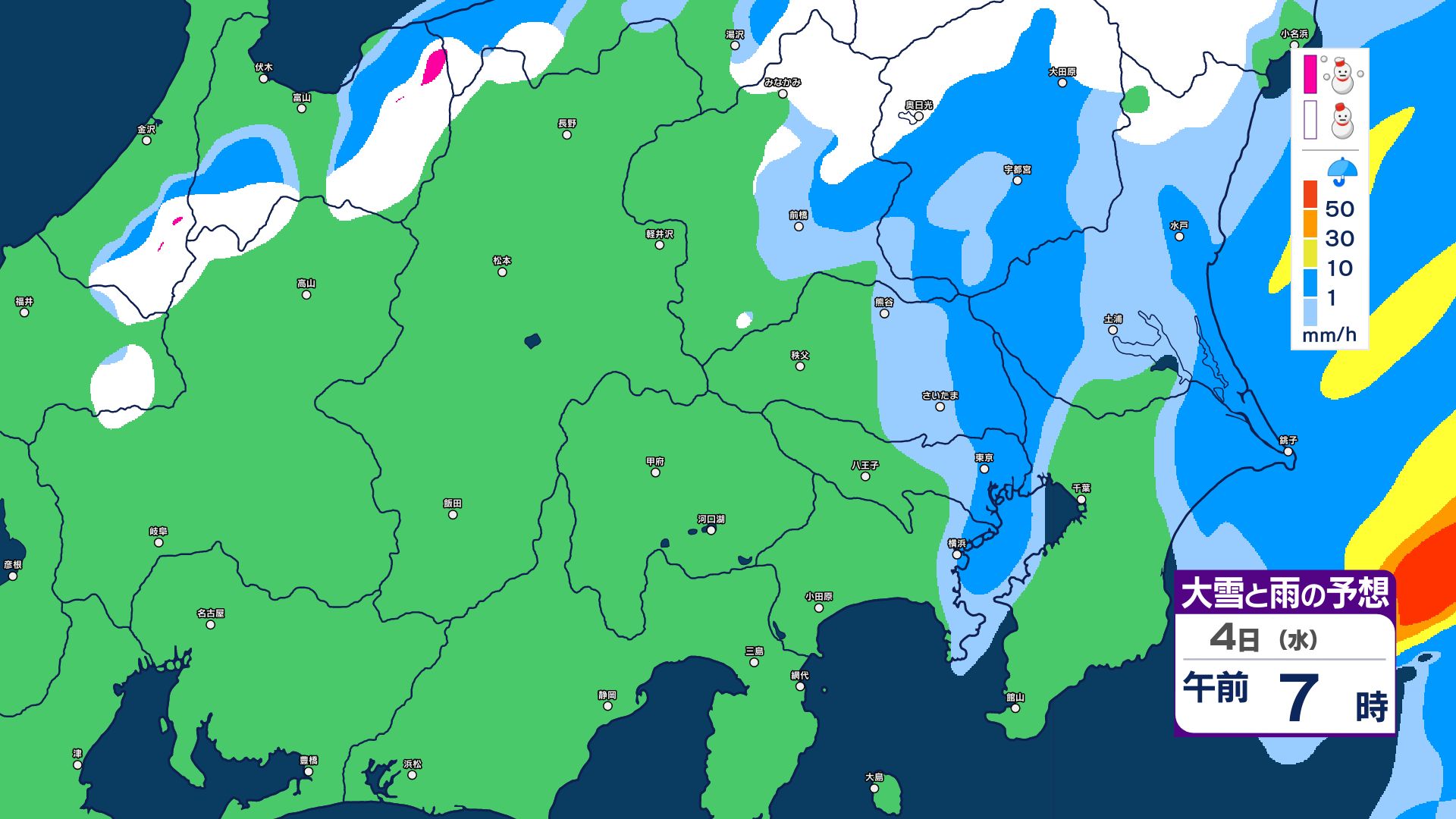 【大雪情報】長野県中部 4日明け方にかけ 大雪や路面の凍結による交通障害に十分注意【雪と雨のシミュレーション画像掲載】20センチ…大北山沿い・上田菅平・佐久・乗鞍上高地・諏訪(~4日午後6時・多い所)長野地方気象台 2026年3月3日(火) 16:31 国内 大雪と雨の予想(3日~5日)