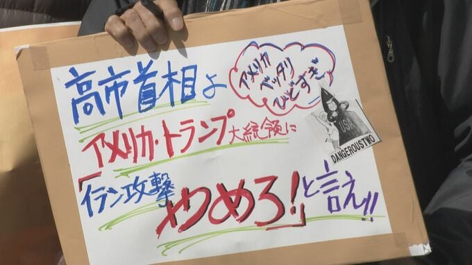 (街頭):「(イランの)核開発を巡ってはアメリカとイランを中心にいま協議中であります。その最中にトランプがそれを蹴散らすように爆撃をした。米国トランプとイスラエルのイラン攻撃は絶対に許されない」