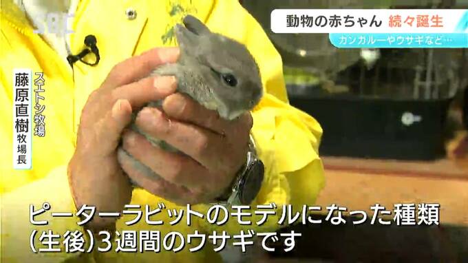 スエトシ牧場 藤原直樹牧場長:「ネザーランドドワーフというウサギ。ピーターラビットのモデルになった種類(生後)3週間のウサギです。ウサギの種類の中で一番小さいと言われています」