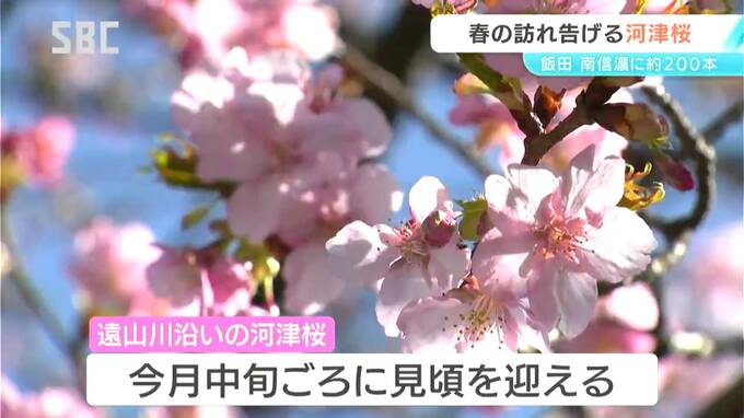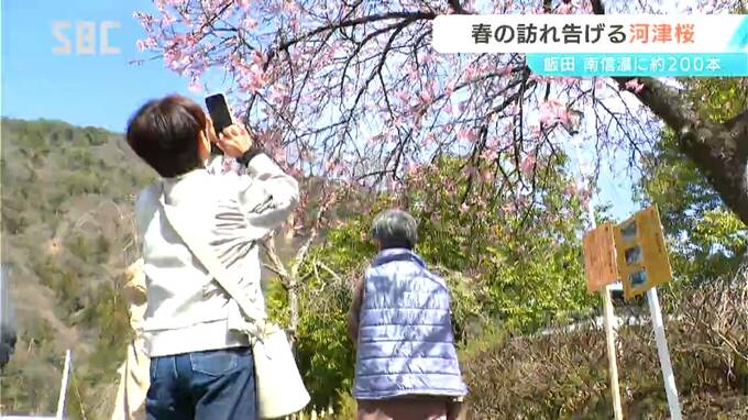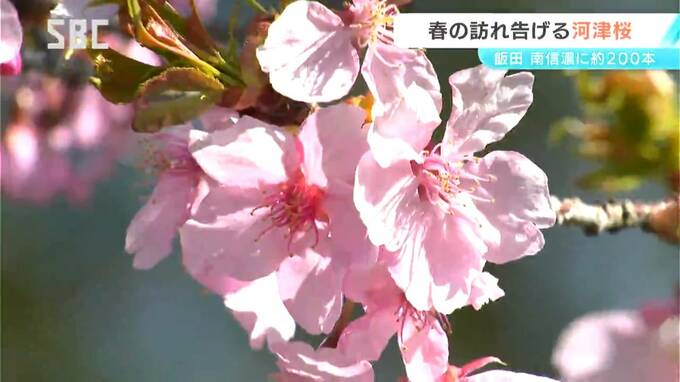 飯田市南信濃では、早咲きの河津桜が咲き始め、春の訪れを感じさせています。