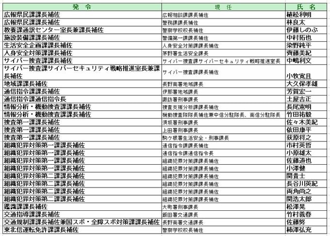 長野県警定期人事異動 第2次異動【名簿一覧掲載】1222人が対象