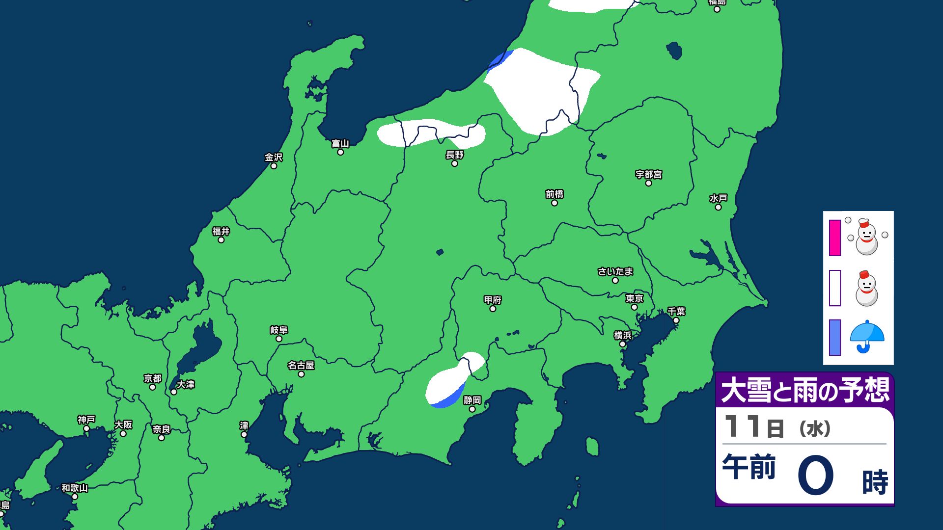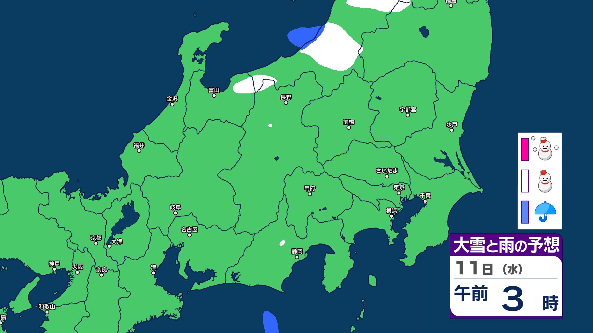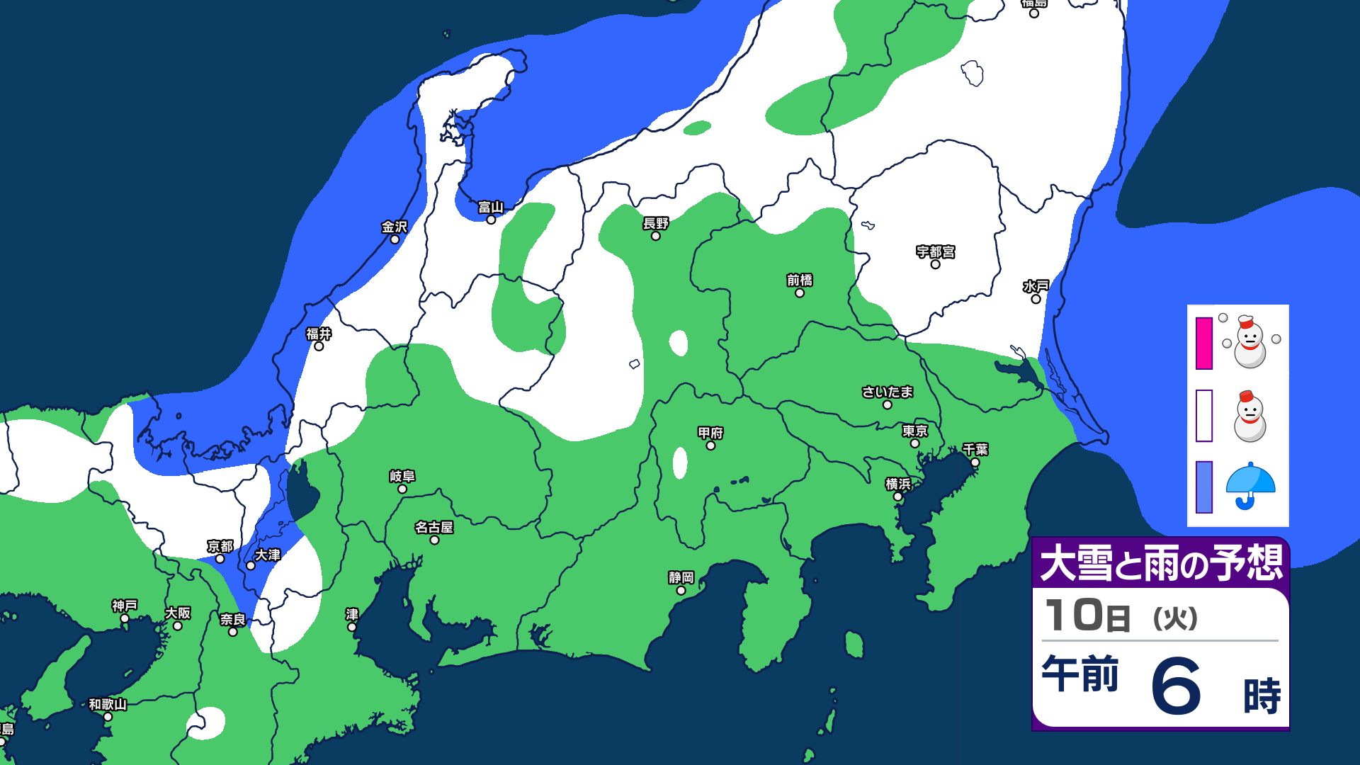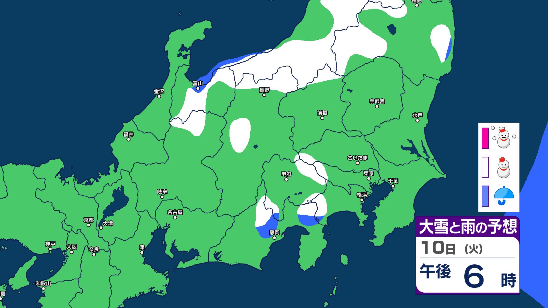 【大雪情報】関東甲信 10日未明~朝にかけ 関東北部の平地で7センチ予想 【雪と雨のシミュレーション画像掲載】気象庁 積雪や路面の凍結による交通障害に注意・警戒呼びかけ 2026年3月9日(月) 17:43 国内 3月9日~10日の雪と雨のシミュレーション
