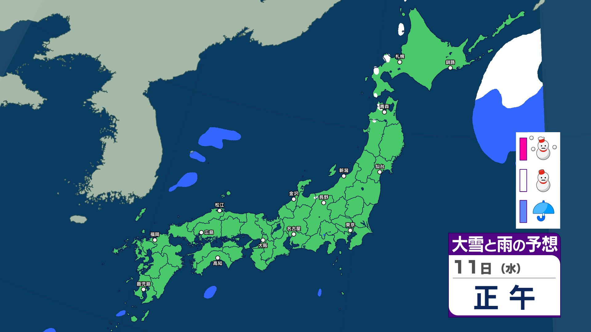 13日にかけて大気の状態不安定で急な強い雨に注意 寒気の影響で山沿い中心に雪の所も 15日頃にかけて東日本太平洋側では大荒れや警報級の大雨のおそれも【雨と雪のシミュレーション掲載】 2026年3月11日(水) 12:00 国内 【3月11日~16日の雪と雨のシミュレーション】