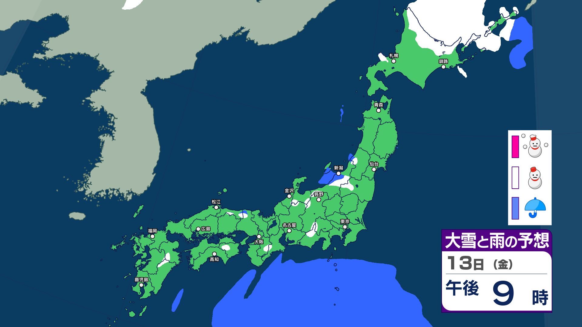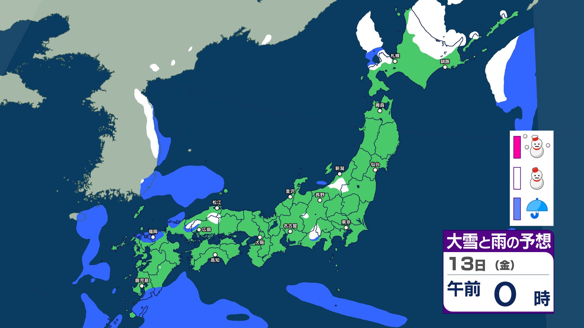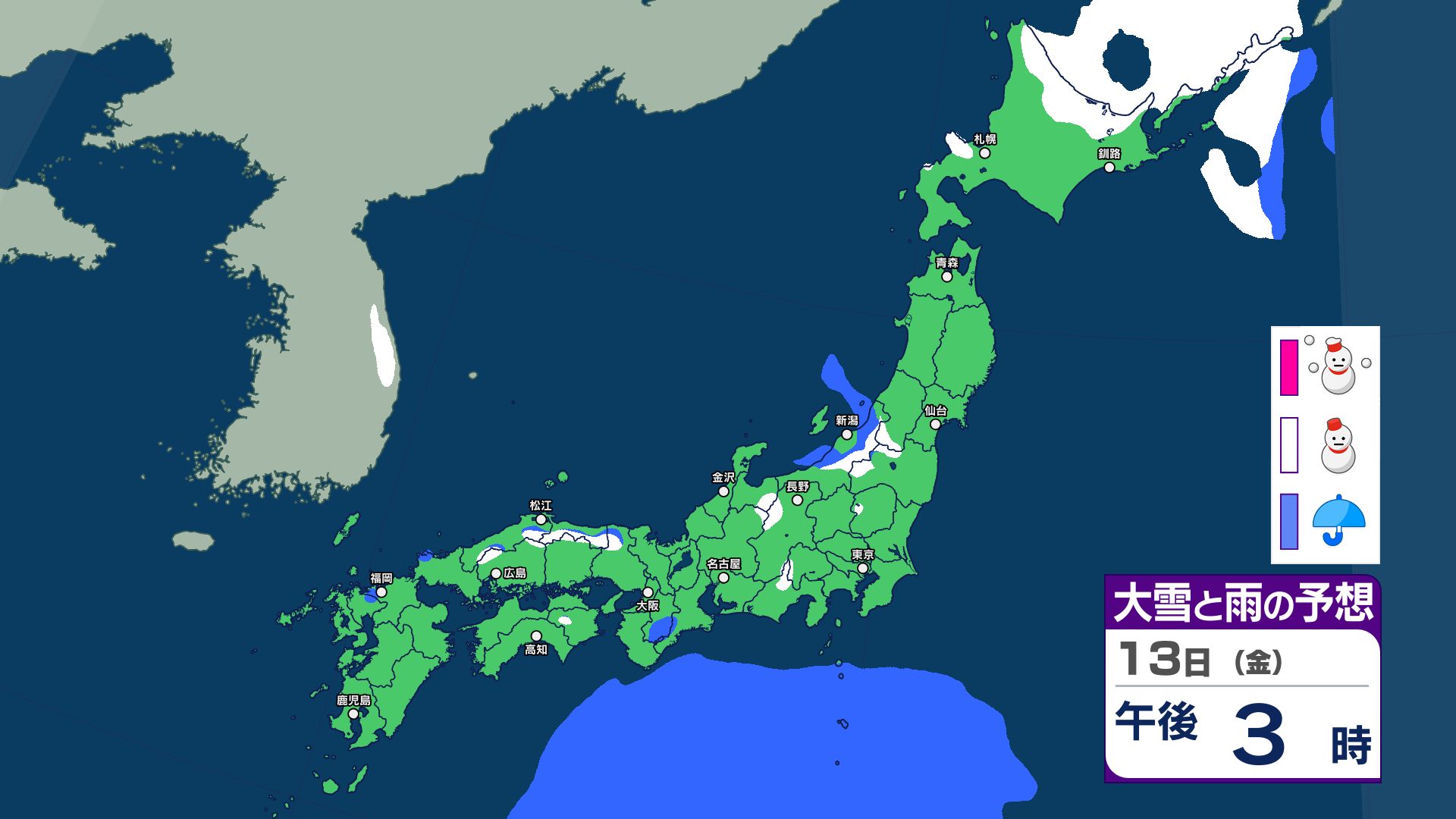 13日にかけて大気の状態不安定で急な強い雨に注意 寒気の影響で山沿い中心に雪の所も 15日頃にかけて東日本太平洋側では大荒れや警報級の大雨のおそれも【雨と雪のシミュレーション掲載】