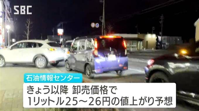石油情報センターは、レギュラーの卸売価格についてきょう以降、1リットルあたり25円から26円値上がりすると予想していて、県内でも同程度の値上げを行うガソリンスタンドがある見込みです。