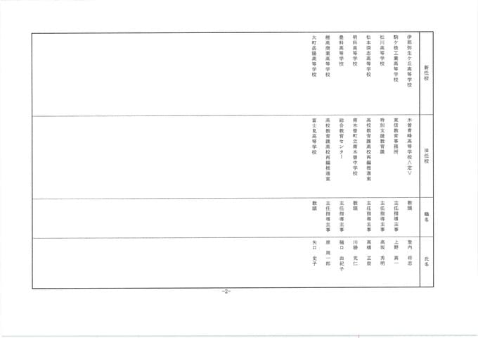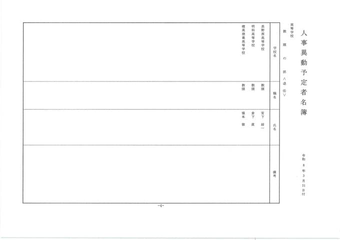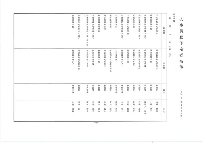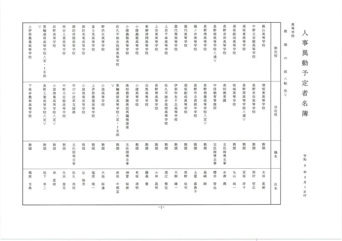 長野県教職員人事異動2026 第2次発表分【名簿一覧掲載】公立高校関係
