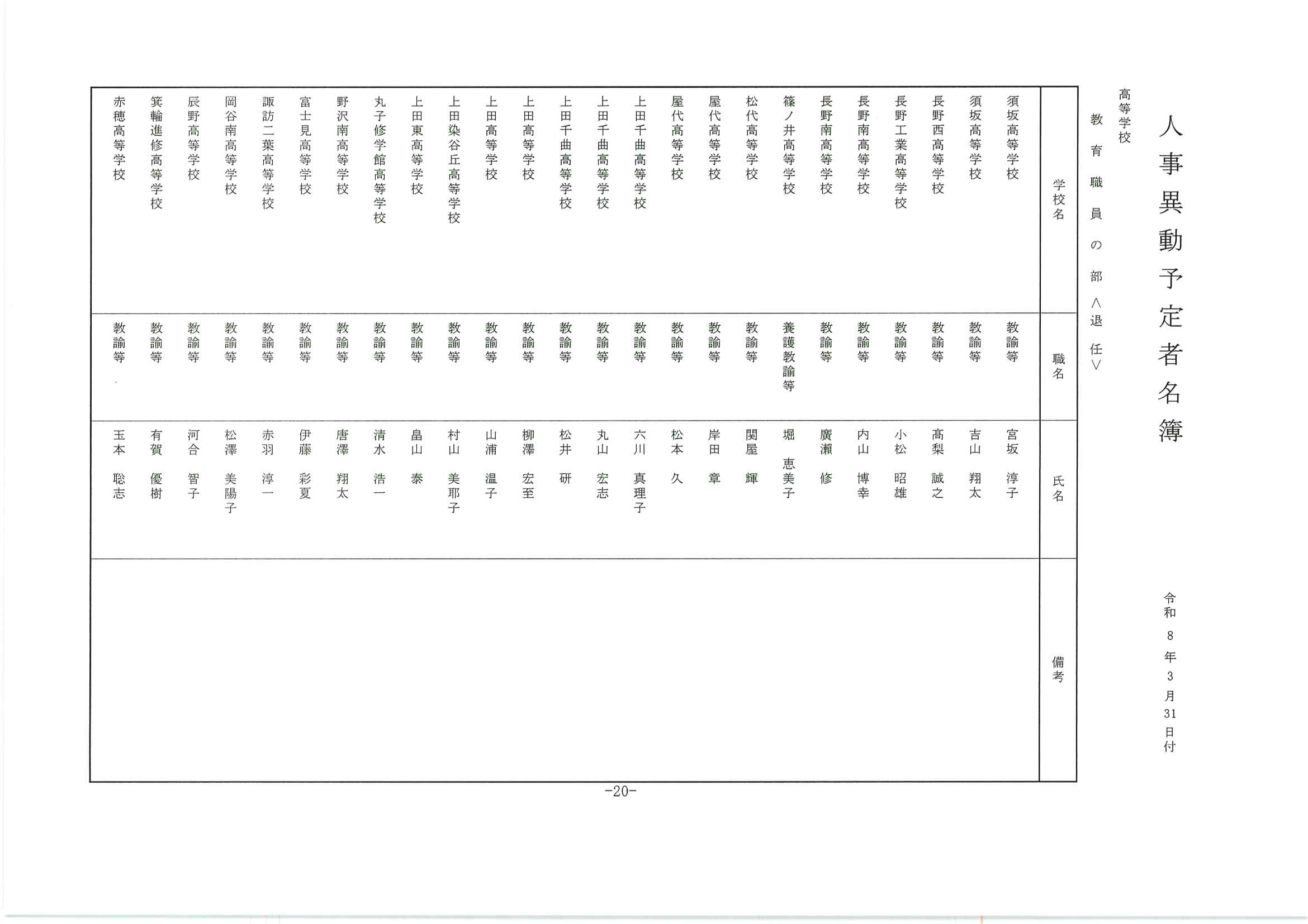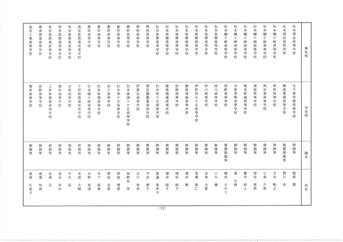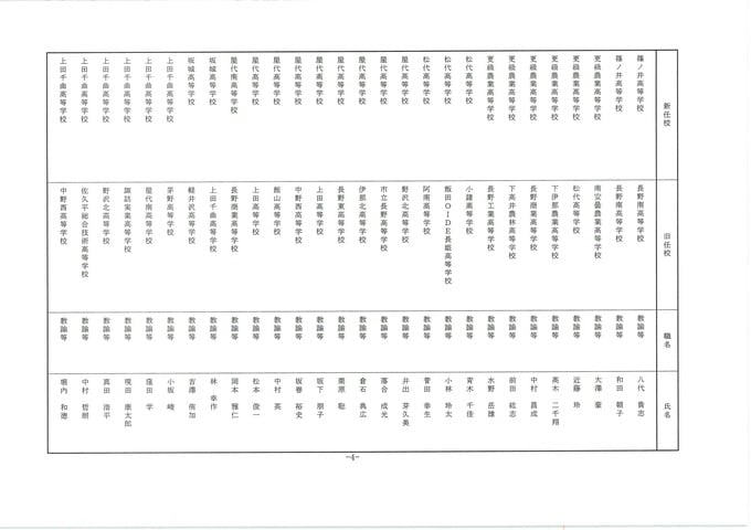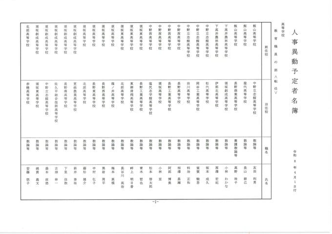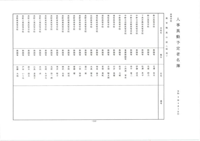 長野県教職員人事異動2026 第2次発表分【名簿一覧掲載】公立高校関係