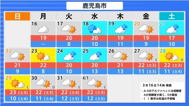 3月16日午後2時30分 鹿児島地方気象台 発表