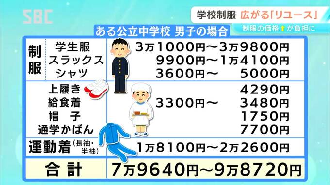 物価高は制服にも。去年秋、メーカーがほぼ一斉に値上げしました。松本市のある中学校が指定する制服や運動着の価格です。