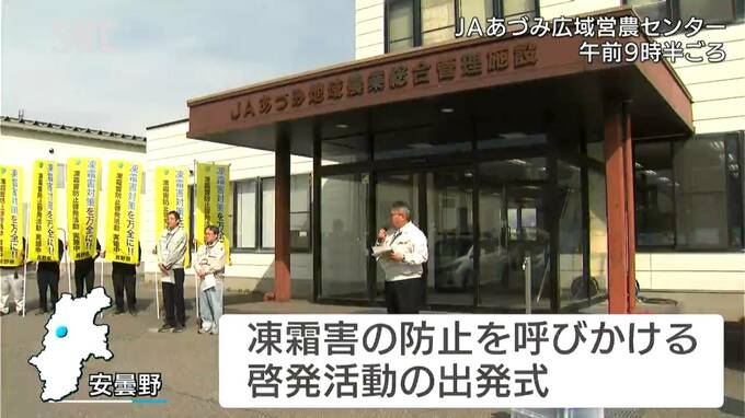 安曇野市のJAあづみ広域営農センターでは、けさ凍霜害の防止を呼びかける啓発活動の出発式が行われました。