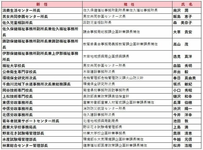 長野県職員人事異動2026【名簿一覧掲載】 部課長級 部長級は48人 課長級は304人 女性の登用は部長級が14人 課長級が100人