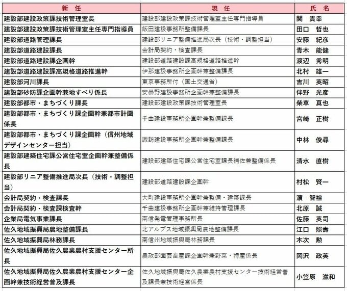 長野県職員人事異動2026【名簿一覧掲載】 部課長級 部長級は48人 課長級は304人 女性の登用は部長級が14人 課長級が100人