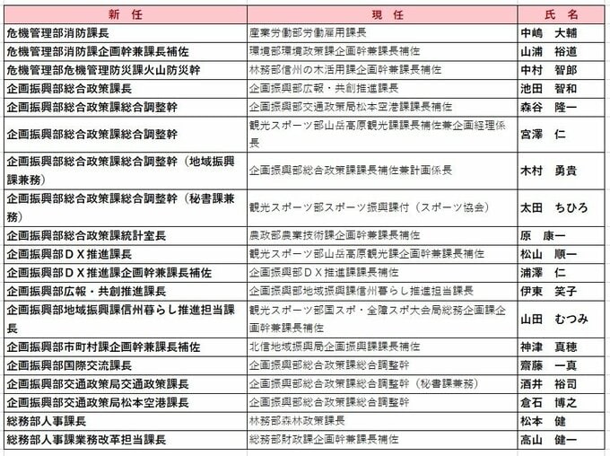 長野県職員人事異動2026【名簿一覧掲載】 部課長級 部長級は48人 課長級は304人 女性の登用は部長級が14人 課長級が100人