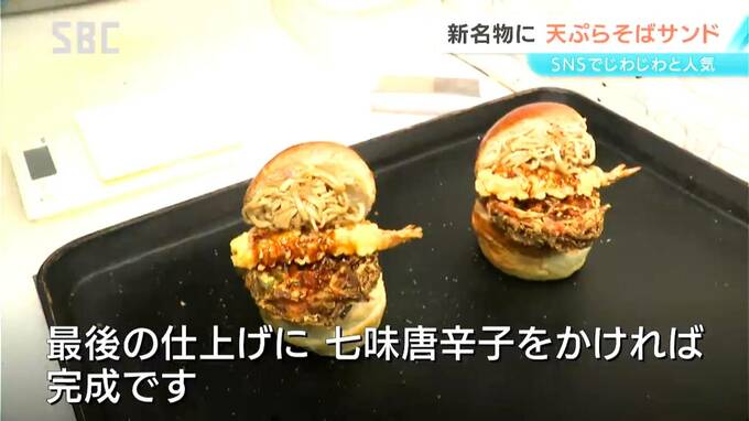 一口で食べるのがおすすめということです。新名物として売り出し中の天ぷらそばサンドは注目度も抜群です。
