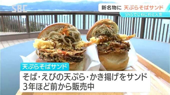 そばにえびの天ぷら、さらにかき揚げが入ったサンドは、3年ほど前から販売。