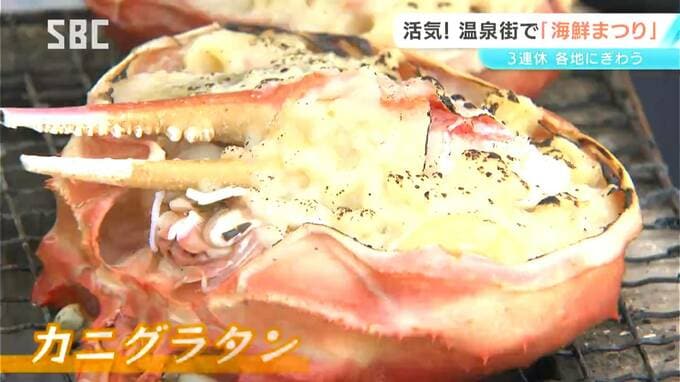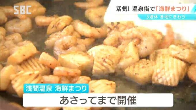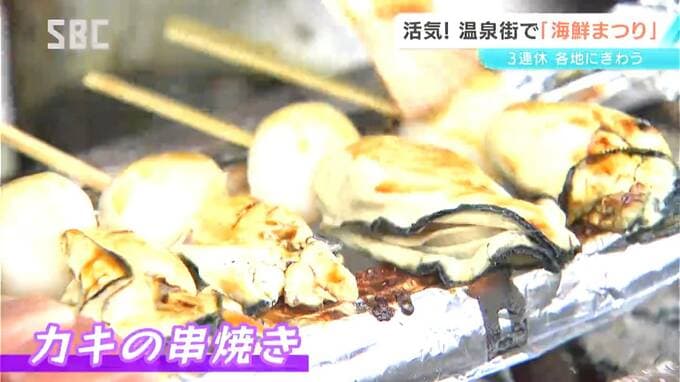 松本市の浅間温泉でこの3連休にあわせて開かれているのが、さまざまな海鮮グルメが楽しめる「海鮮まつり」です。