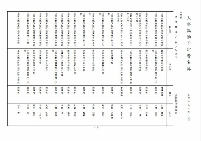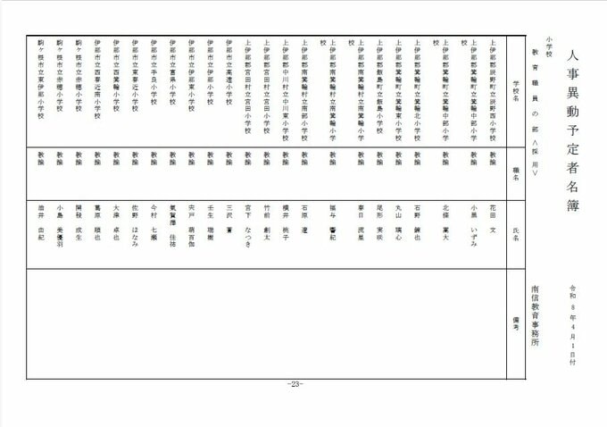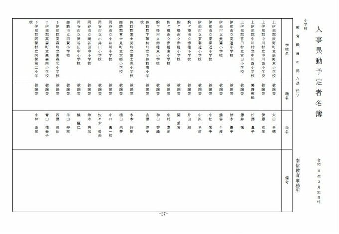 長野県教育委員会は、2026年4月1日付の教職員の第3次の人事異動について発表しました。