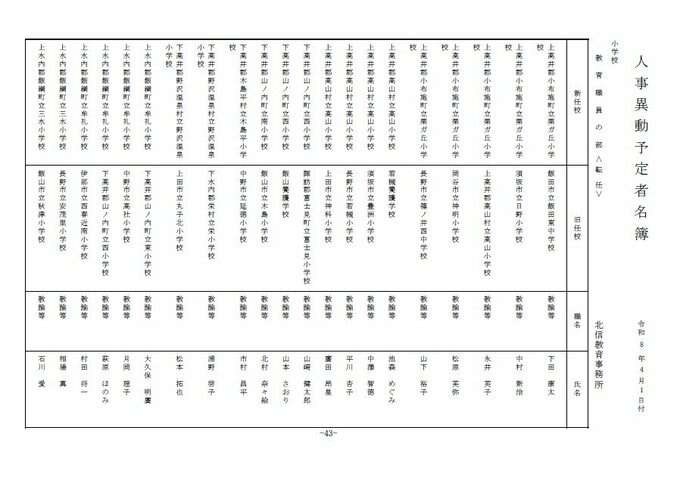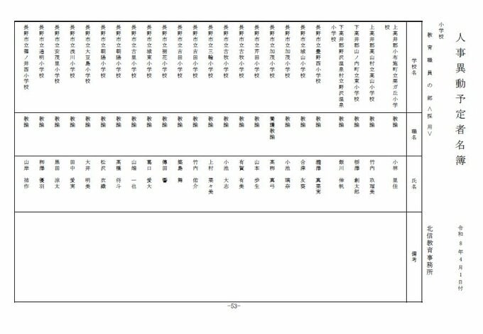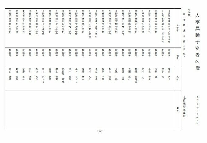 長野県教育委員会は、2026年4月1日付の教職員の第3次の人事異動について発表しました。