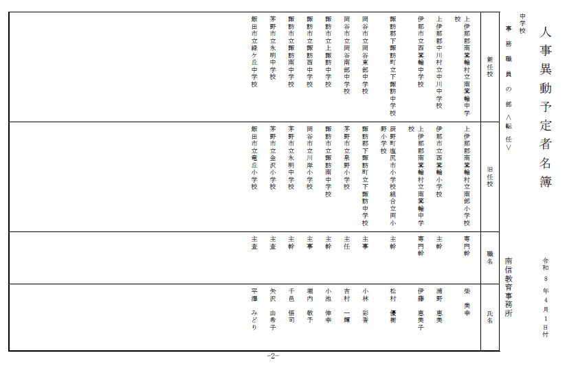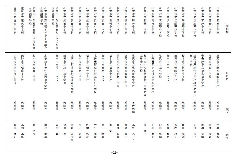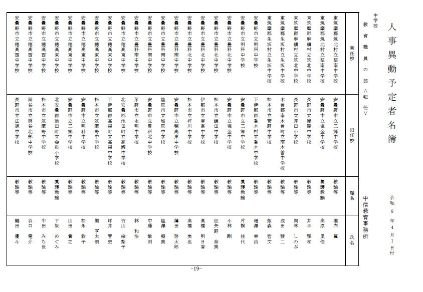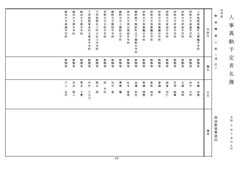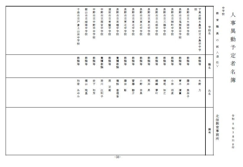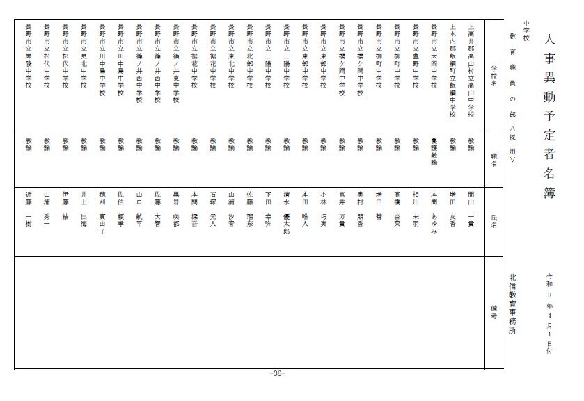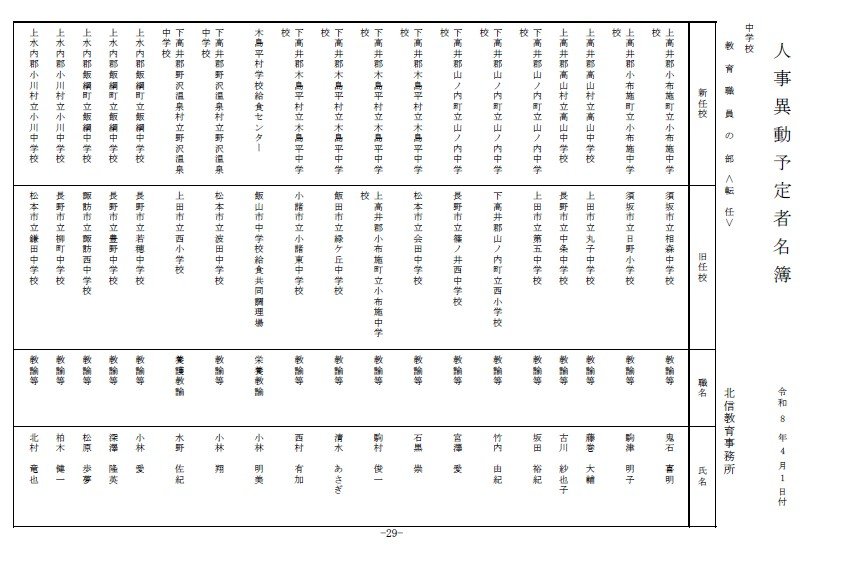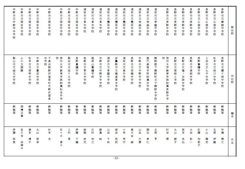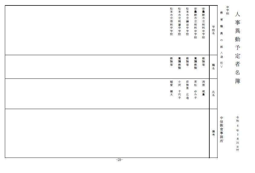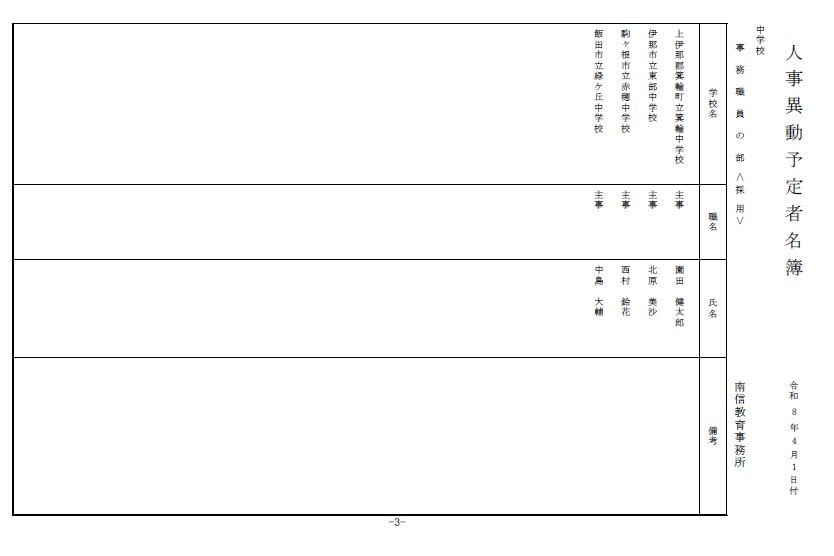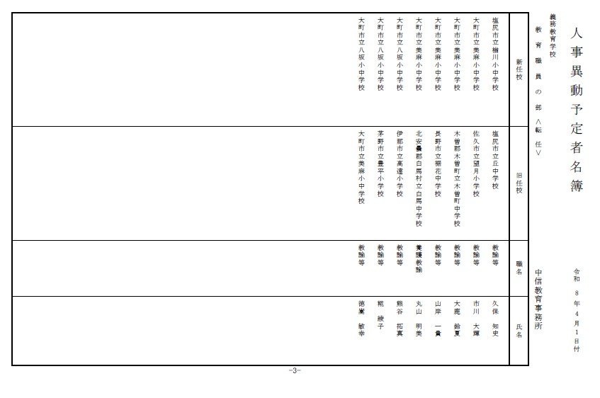 長野県教育委員会は、2026年4月1日付の教職員の第3次の人事異動について発表しました。