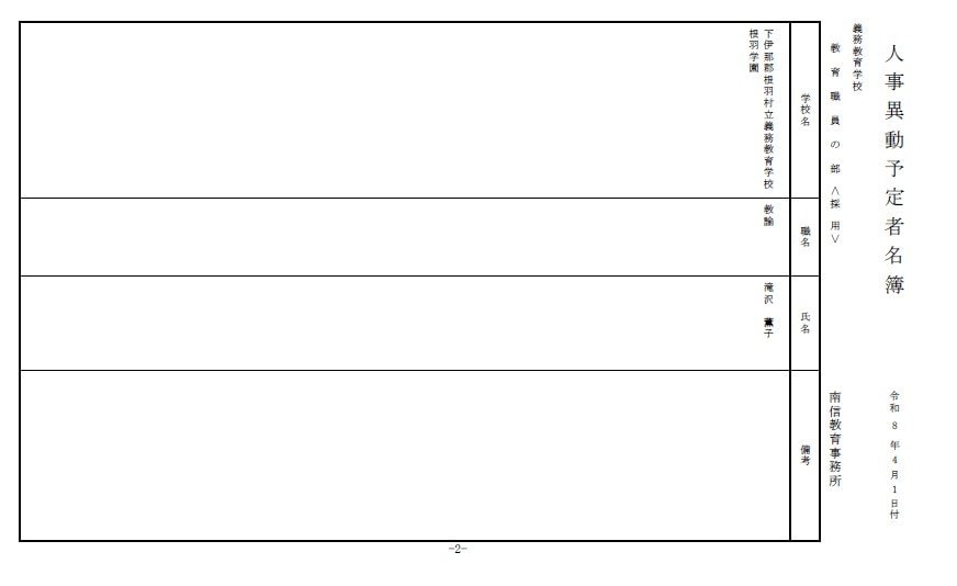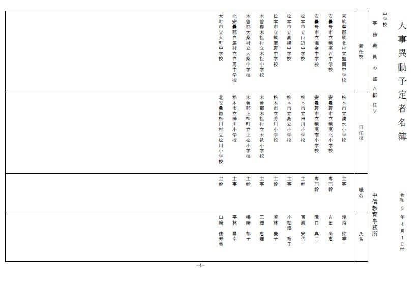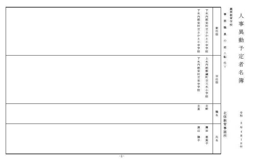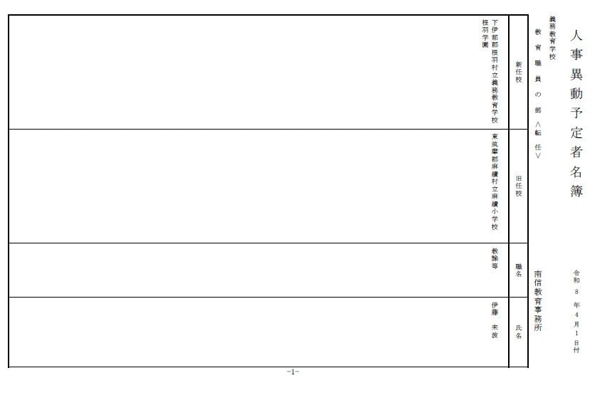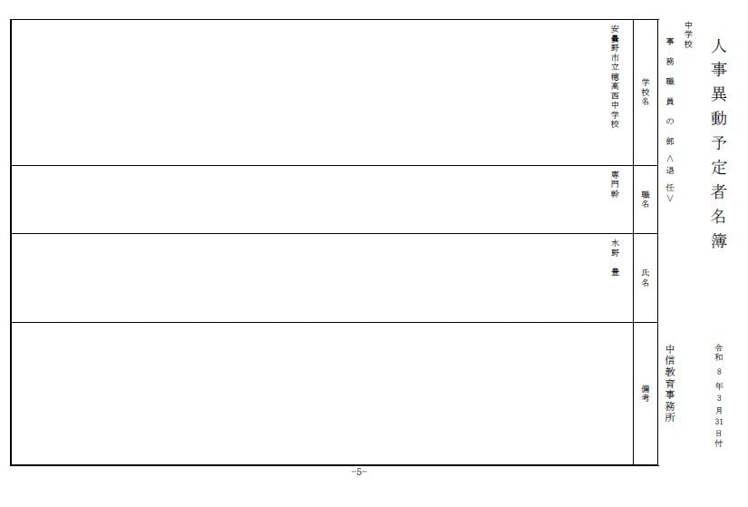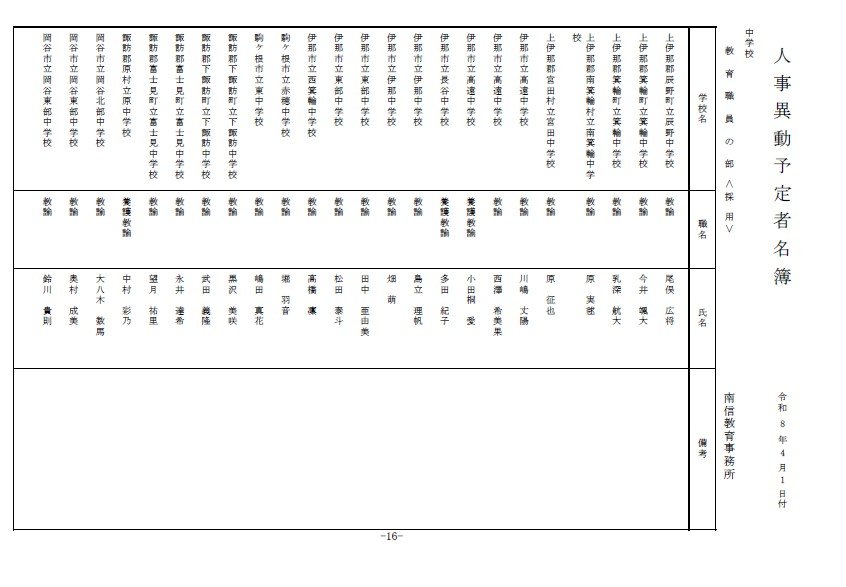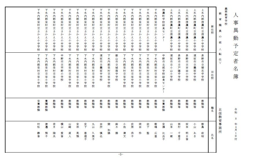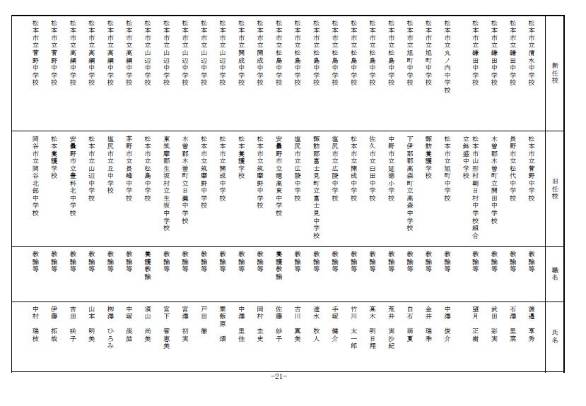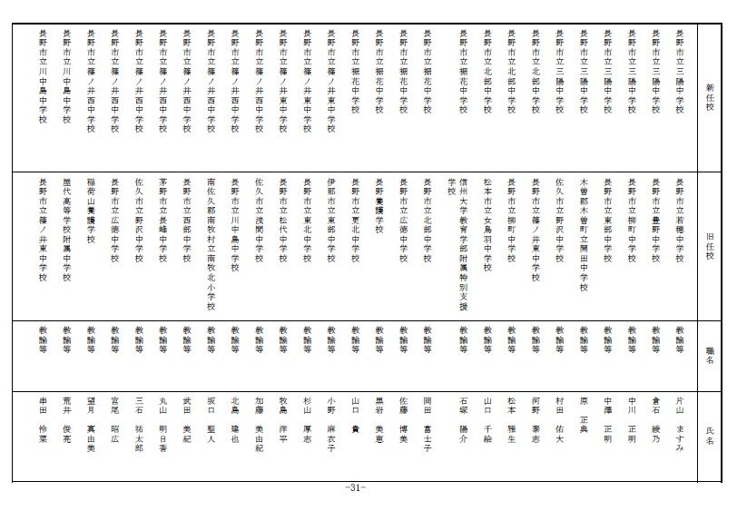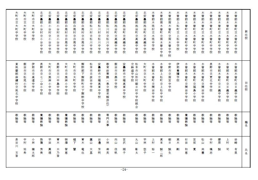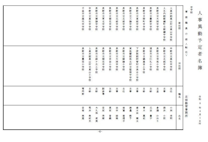 長野県教育委員会は、2026年4月1日付の教職員の第3次の人事異動について発表しました。