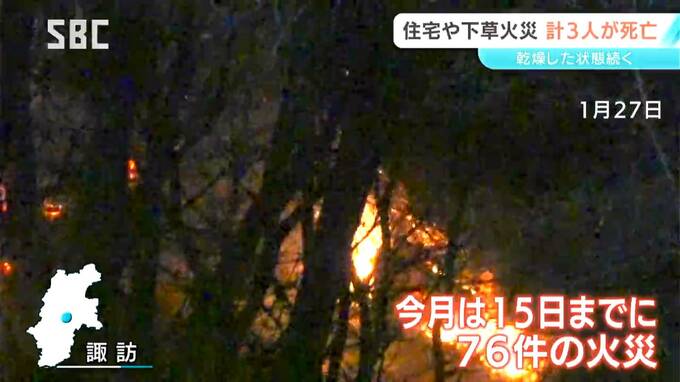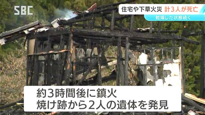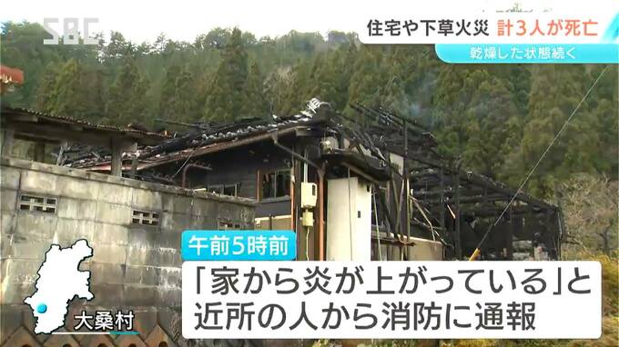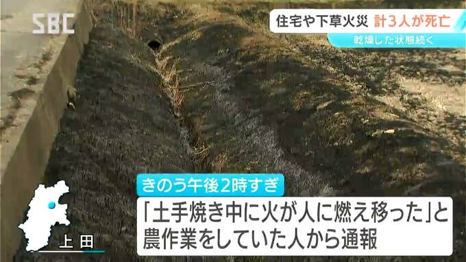 長野県内では22日から火災が相次ぎ、あわせて3人が死亡しました。大桑村では住宅が全焼し、焼け跡から2人が遺体で見つかったほか、上田市では枯草を焼いていた男性が死亡しました。