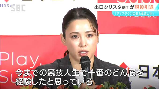 出口クリスタ選手:「ハードでしたね。振り返ってみてもアップダウンある柔道人生だった。東京オリンピックで落選した時、一番のどん底。あの時の絶望あってそれを経験したからパリの金、きょうの私がいる。人間としても成長させてくれたのも柔道」
