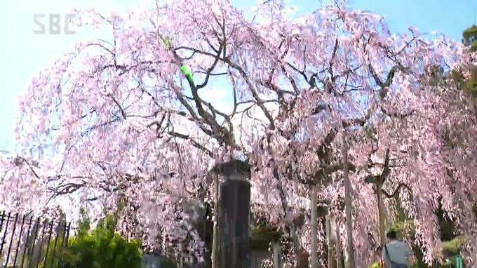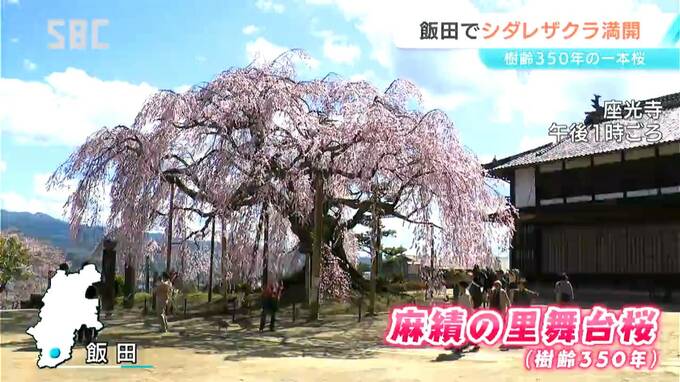 飯田市では、樹齢350年というシダレザクラが満開になりました。