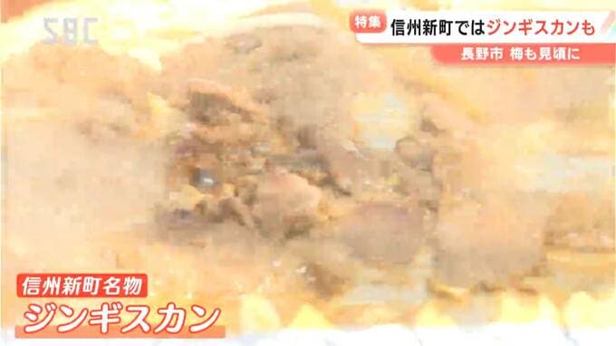 一方、こちらも“花より焼き肉”ですが、焼いているのは、信州新町名物・ジンギスカンです。
