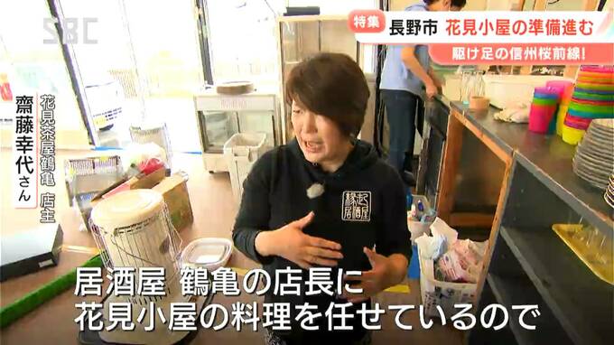 花見茶屋 鶴亀店主・齋藤幸代さん:「居酒屋・鶴亀の店長に花見小屋の料理を任せているので、両方の仕込みと準備という形になってしまうので(大変)」