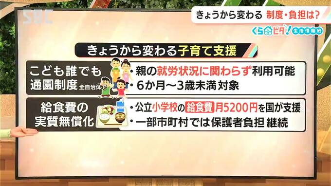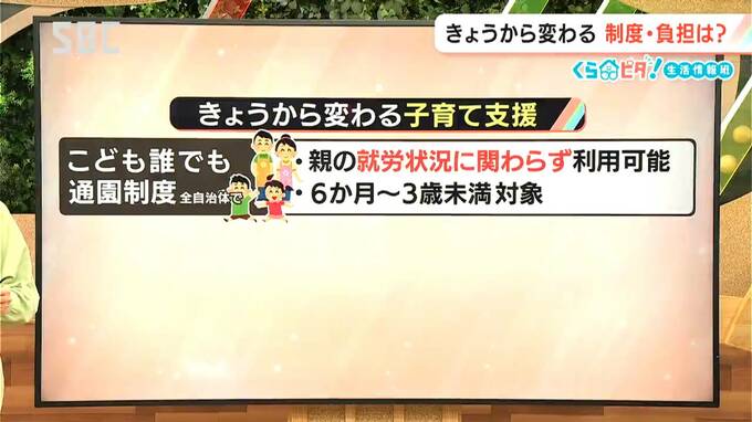 私たちの負担がどう変わるのかも合わせて見ていきます。まずは紹介した「こども誰でも通園制度」。親の就労状況に関わらず、6か月から3歳未満の子どもが保育園など時間単位で利用できる制度がすべての市町村で始まります。