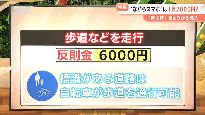 歩道や路側帯などを自転車で走行した場合は6000円の反則金が課されます。