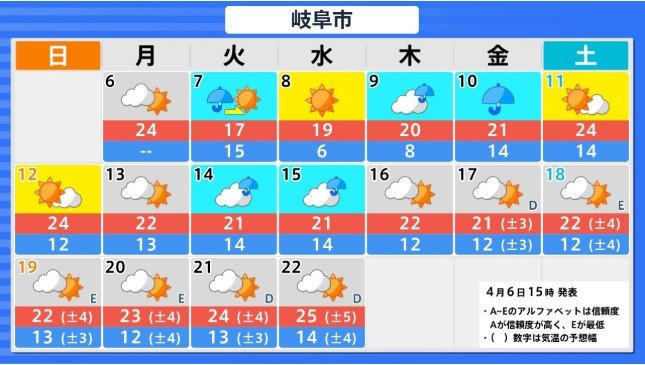 東海地方 4月12日頃から かなりの高温