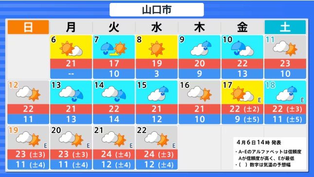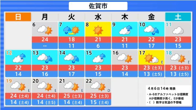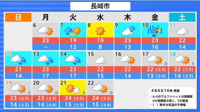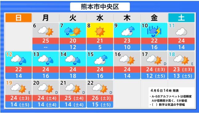 九州北部地方(山口県を含む) 4月12日頃から かなりの高温