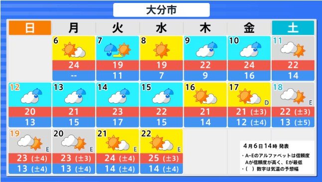 九州北部地方(山口県を含む)の向こう2週間の気温は、暖かい空気が流れ込みやすいため高い日が多く、かなり高い日もあるでしょう。農作物の管理等に注意してください。
