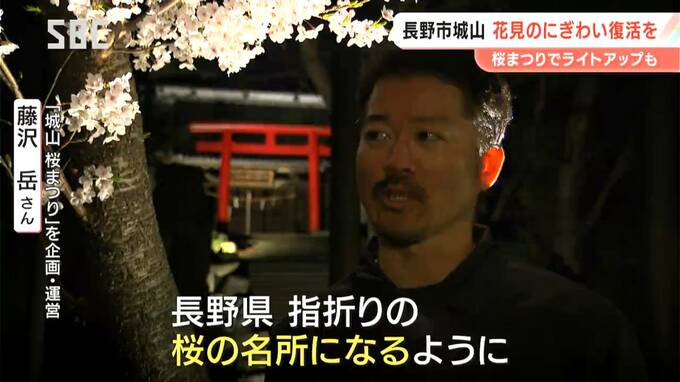 城山桜まつりを企画・運営 藤沢岳さん:「長野県指折りの桜の名所になるようにまずはそこから。復活という形でやる『城山桜まつり』、屋台も出て子どもたちが遊べる遊具もあるので、家族で出かけてもらえれば」