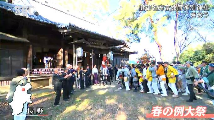 長野市の神社で12日、春の例大祭が開かれ大勢の人でにぎわいました。