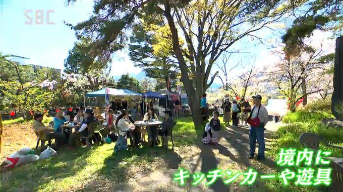 かつては、花見小屋などが設けられ、にぎわった境内もコロナ禍以降は訪れる人が減少。にぎわいを復活させようと今年から境内に屋台や子ども向けの遊具などが設置されました。