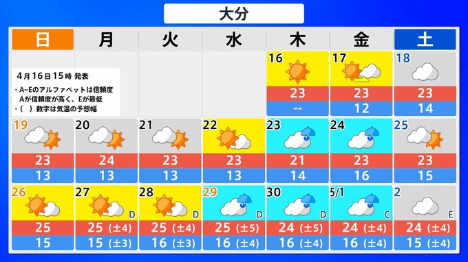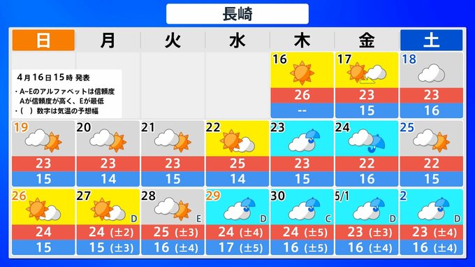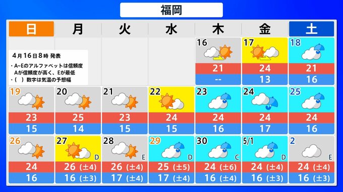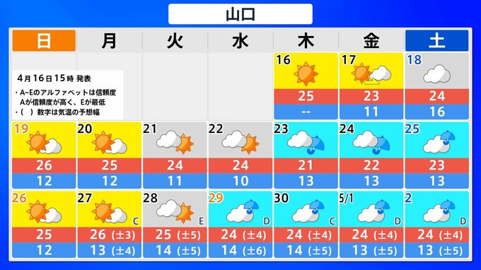 九州北部地方(山口県を含む) 4月22日頃から かなりの高温