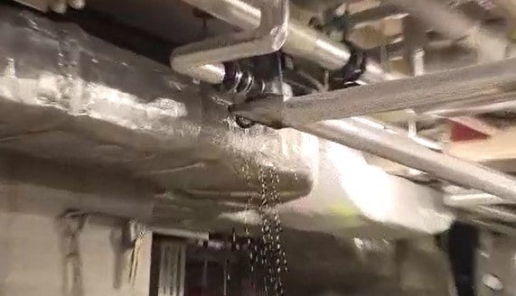 地震から一夜が明け、震源に近い大町市の温泉施設では、温泉を送るパイプが水漏れしているのが見つかり、対応に追われていました。