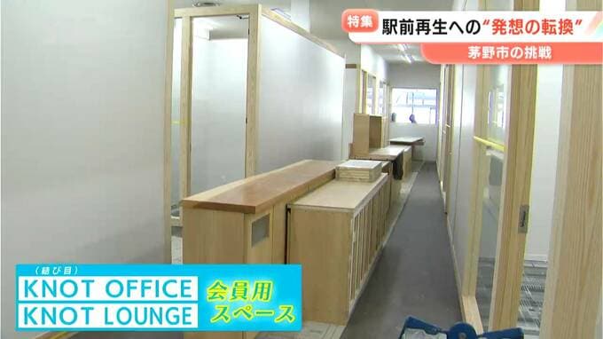 奥のスペースは英語で結び目を意味する「ノット(KNOT)」を名前に付けた会員制のオフィスとラウンジを設け、人と人との結びつきを狙います。