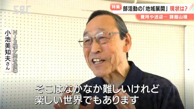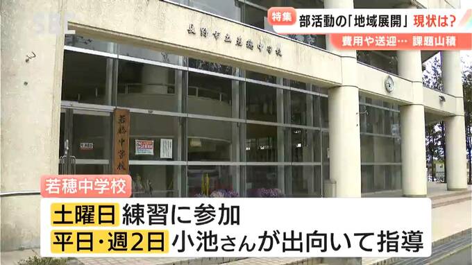 NJB櫻ヶ岡に参加する若穂中学は櫻ケ岡中学から最も遠く直線距離でおよそ6キロ。生徒は土曜日のみ練習に参加し、小池さんが平日に週2日、出向いて指導しています。