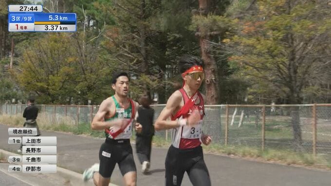 序盤の中学生区間から上位につけたのは上田市。