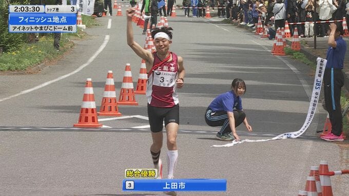 そのままゴールテープを切った上田市は2時間3分27秒の大会記録で2大会ぶり、2回目の優勝を果たしました。