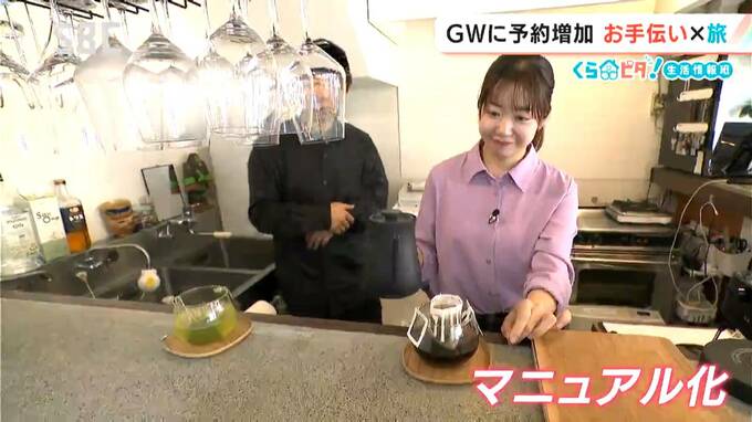 そして、夕方のお手伝いは、チェックイン作業とウェルカムドリンクの提供。英語が苦手なスタッフでもできるようにマニュアル化されています。