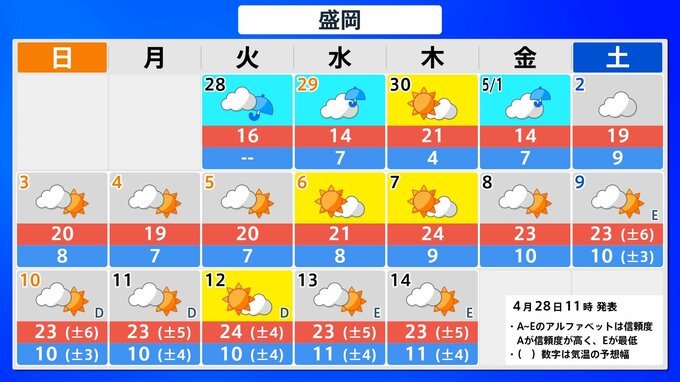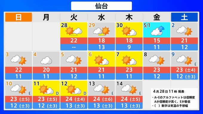【気象情報】大型連休の各地の天気予報は?【県庁所在地47地点の16日間予報掲載】5月1日(金)前後と4日(月)前後で雨が降るところが多くなる見込み 2026年4月28日(火) 12:33 国内 北海道・東北 県庁所在地の16日間予報